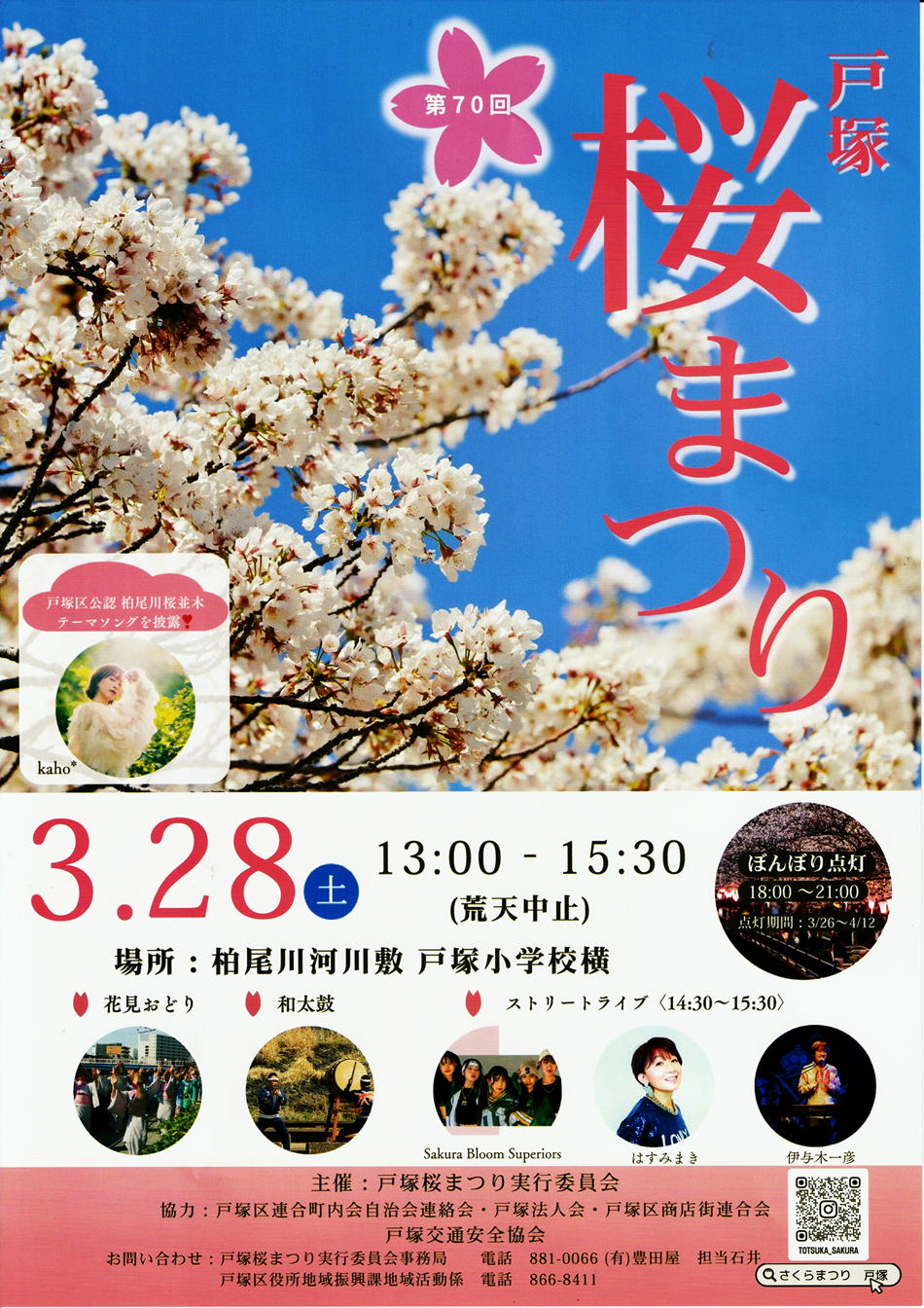 春の訪れを感じる柏尾川の桜とともに、今年も開催されます。
